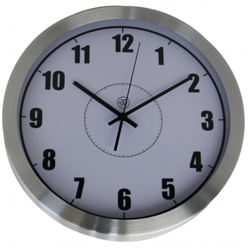 De NeXtime wandklok Precision heeft een RVS rand, een witte wijzerplaat en een zwarte uuraanduiding. Door de eenvoud van het design van de klok past deze in elke kamer.
