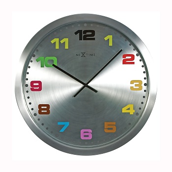 De NeXtime Mercure wandklok heeft een geborstelde roestvrij stalen rand en een glasplaat voor de aluminium wijzerplaat. De uuraanduiding bestaat uit cijfers in verschillende kleuren, waardoor de tijd eenvoudig is af te lezen. Deze klok geeft extra kleur in elk interieur. Afm. Ã45cm