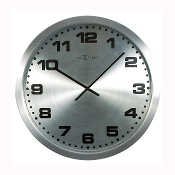 De NeXtime Mercure wandklok heeft een geborstelde roestvrij stalen rand en een glasplaat voor de aluminium wijzerplaat. De uuraanduiding bestaat uit zwarte cijfers, waardoor de tijd eenvoudig is af te lezen. Deze stijlvolle klok heeft een stoere uitstraling waardoor deze in elk modern interieur past. Afm. Ã45cm