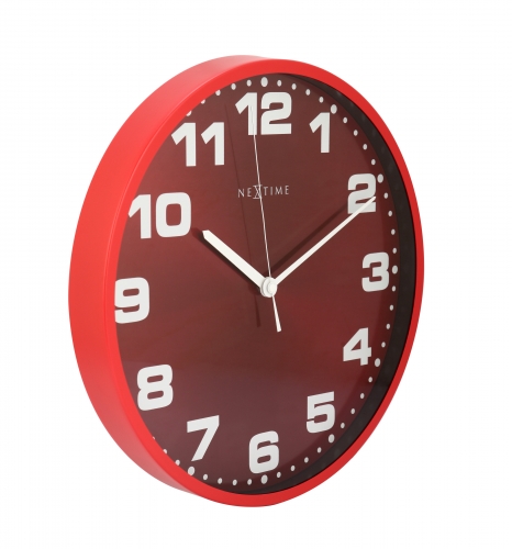 De NeXtime Dash Red wandklok is een eenvoudige strakke klok met een smalle rode metalen rand en een rode aluminium wijzerplaat. De metallic afwerking zorgt voor een elegant en stijlvol uiterlijk. Deze klok heeft een uuraanduiding met witte cijfers en rode secondewijzer en heeft een stil uurwerk. Hierdoor is deze klok uitermate geschikt voor in de woonkamer, de slaapkamer of op kantoor. Afm. Ã35cm