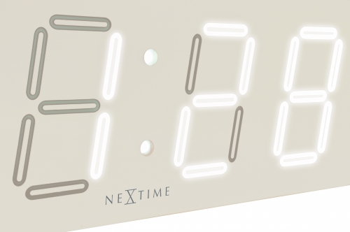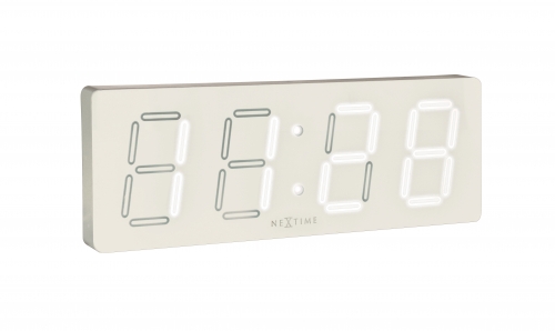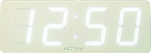 De NeXtime White D wandklok heeft een witte kunststof behuizing, een witte glasplaat en witte LED verlichting. Dit maakt deze klok een goede keuze voor grote ruimtes. Door zijn afmetingen is de tijd vanaf tientallen meters afstand leesbaar en is deze klok een ware blikvanger. Ideaal voor scholen en openbare gebouwen! Deze klok werkt op netstroom. Afm. 51.5x18cm