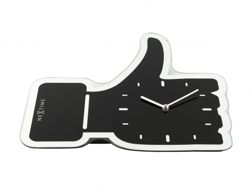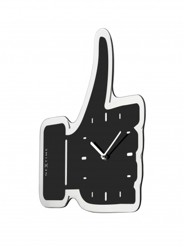 De NeXtime Thumbs Up Black wandklok is erg geschikt om wat positiviteit toe te voegen aan uw interieur. Met het duimpje omhoog geeft u uw interieur een enorme boost. De rand en de uuraanduiding van deze klok is gemaakt van zilver spiegelend glas en heeft een zwarte wijzerplaat. De Thumbs Up kan ook een Thumbs down worden door de klok andersom aan de muur op te hangen. Afm. 40x41.5cm
