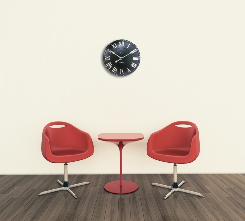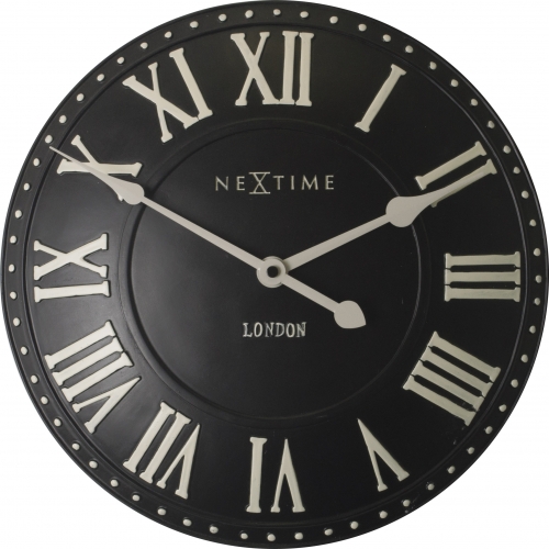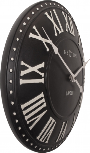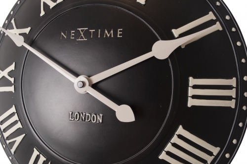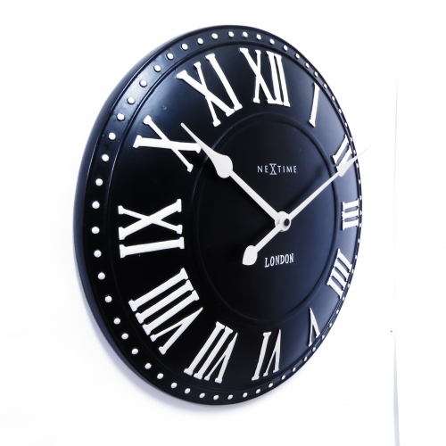 De London Roman wandklok brengt een stukje London in huis. De zwarte poly resin wijzerplaat loopt bol en de 3D uuraanduiding bestaat uit witte Romeinse cijfers. Door de klassieke uitstraling past deze klok in elk interieur. Afm. Ã34.5cm