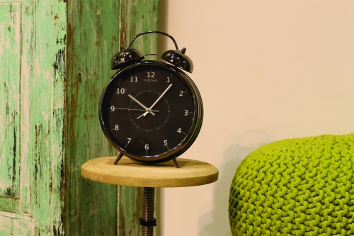 De NeXtime Wake Up wekker heeft een klassieke uitstraling door de zwarte chromen buitenkant met alarmbellen, een zwarte wijzerplaat en een witte uuraanduiding. Voor de wijzerplaat zit een glasplaat. Tijd en wektijd kunnen eenvoudig met een draaiknop worden ingesteld en het alarm werkt met een aan/uit knop. In deze wekker zit verlichting en is een stil uurwerk verwerkt, handig voor in de slaapkamer. Doe eens gek, en plaats de wekker niet op uw nachtkastje, maar hang deze wekker op aan de muur. Afm. Ã23cm