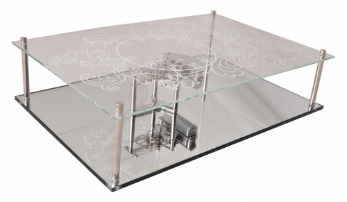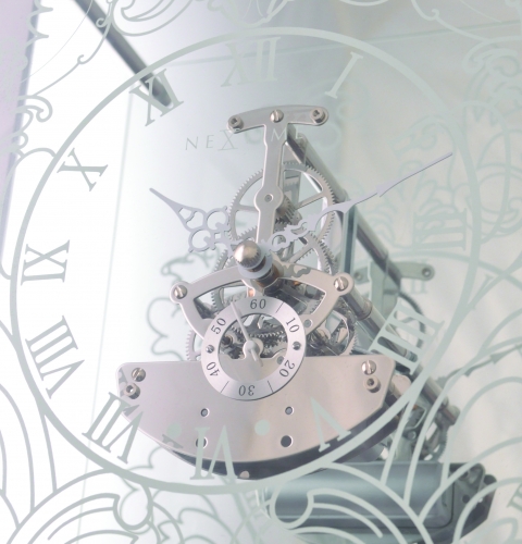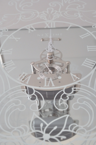 De NeXtime Fantome tafelklok van NeXtime is een traditionele tafelklok met een transparante twist. Op de glasplaat is een afbeelding van een oude tafelklok in het wit bedrukt. De achterplaat is gemaakt van spiegelglas waardoor de klok groter oogt en het opengewerkte uurwerk is hierdoor in zijn geheel zichtbaar. Het mechanische uurwerk bestaat uit tandwieltjes die ronddraaien en geven deze klok functionaliteit. De Romeinse uuraanduiding maakt deze tafelklok compleet. Afm. 37x25x10cm