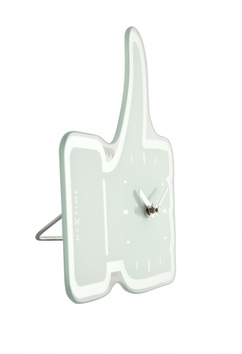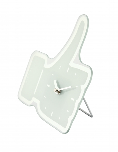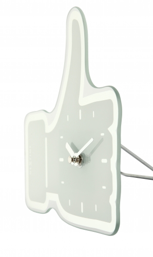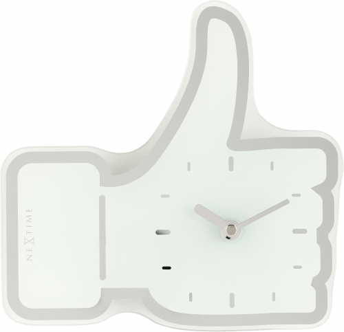 De NeXtime Mini Thumbs Up White wandklok is erg geschikt om wat positiviteit toe te voegen aan uw interieur. Met het duimpje omhoog geeft u uw interieur een enorme boost. De rand en de uuraanduiding van deze klok is gemaakt van zilver spiegelend glas en heeft een blauwe wijzerplaat. De Thumbs Up kan ook een Thumbs down worden door de klok andersom aan de muur op te hangen. De klok kan aan de wand of op tafel geplaatst worden. Afm. 20,5x21cm