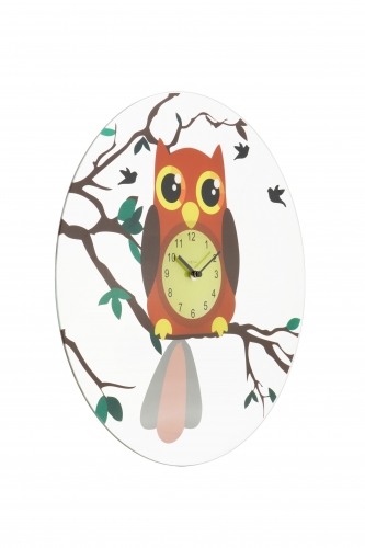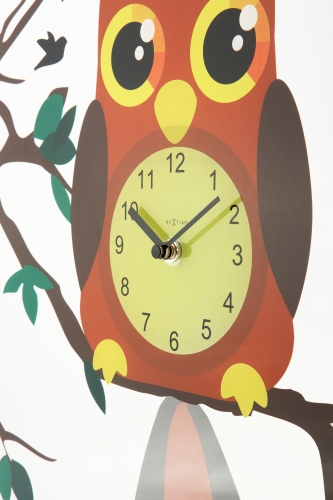 De NeXtime Oohoo wandklok is gemaakt van helder glas. Deze klok is bedrukt met een vrolijke uil met grote ogen. Zijn staart zwaait heen en weer in een slingerbeweging terwijl de tijd aan hem voorbij gaat. De uil zit op een tak en op zijn buik wordt de tijd aangegeven door middel van cijfers. Deze glasklok hangt perfect op elke kinderkamer. Oohoo! Afm. Ã43cm